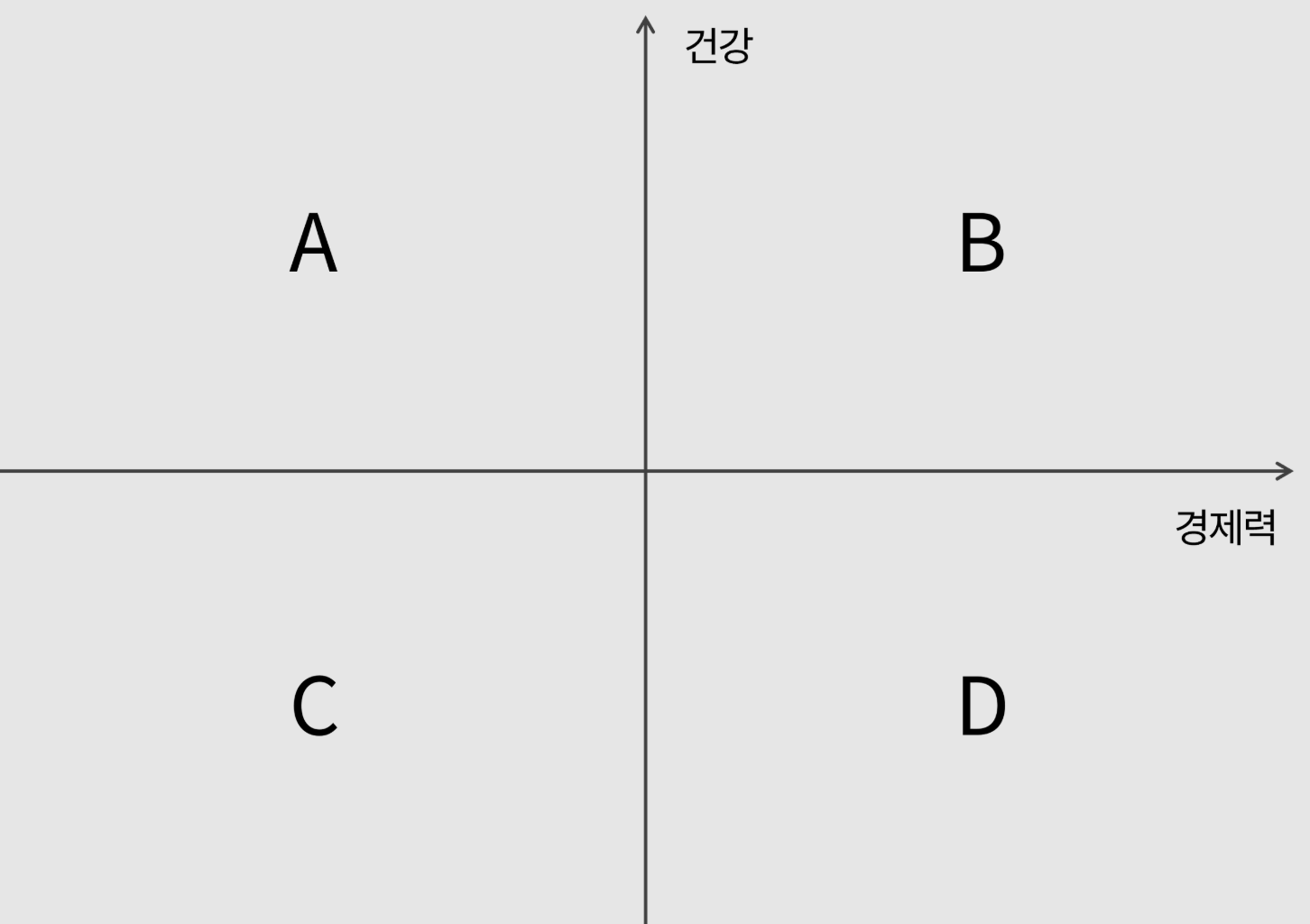 위의 매트릭스로 노인이라는 대상을 건강과 경제력이라는 축을 가지고 구분해보자. 건강과 경제력이 모두 낮은 C 영역은 공공 복지의 대상으로 볼 수 있다. 건강은 있으나 경제력이 낮은 A 영역은 소득을 얻을 수 있도록 일자리가 필요하다. 반대로 건강이 낮고 경제력이 높은 D 영역은 공공 및 민간 사회서비스 대상자이다. D 영역이 포페런츠가 현재 중점적으로 타겟하고 있는 대상이라고 볼 수 있다.