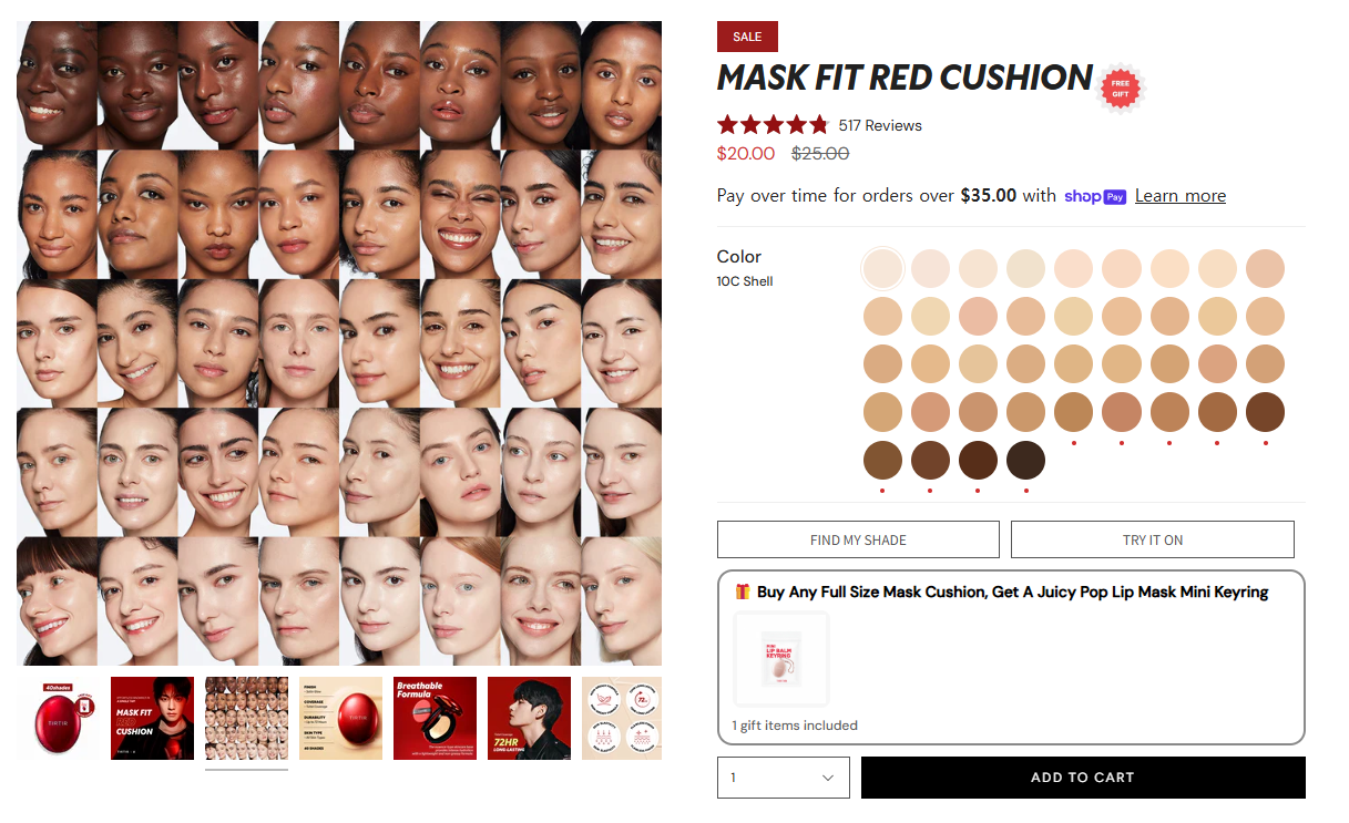 한국 색조 화장품은 밝은 피부색 위주로 구성되어 서구권 및 유색인종 시장 진입에 한계가 있었다. 티르티르는 흑인 뷰티 크리에이터의 피드백을 수용, 쿠션 색상을 30가지로 대폭 확장하며 미국 아마존 파운데이션 부문 1위를 달성했다. 포용성을 갖춘 제품 라인업이 거대 시장 진입의 열쇠가 된 사례다.
