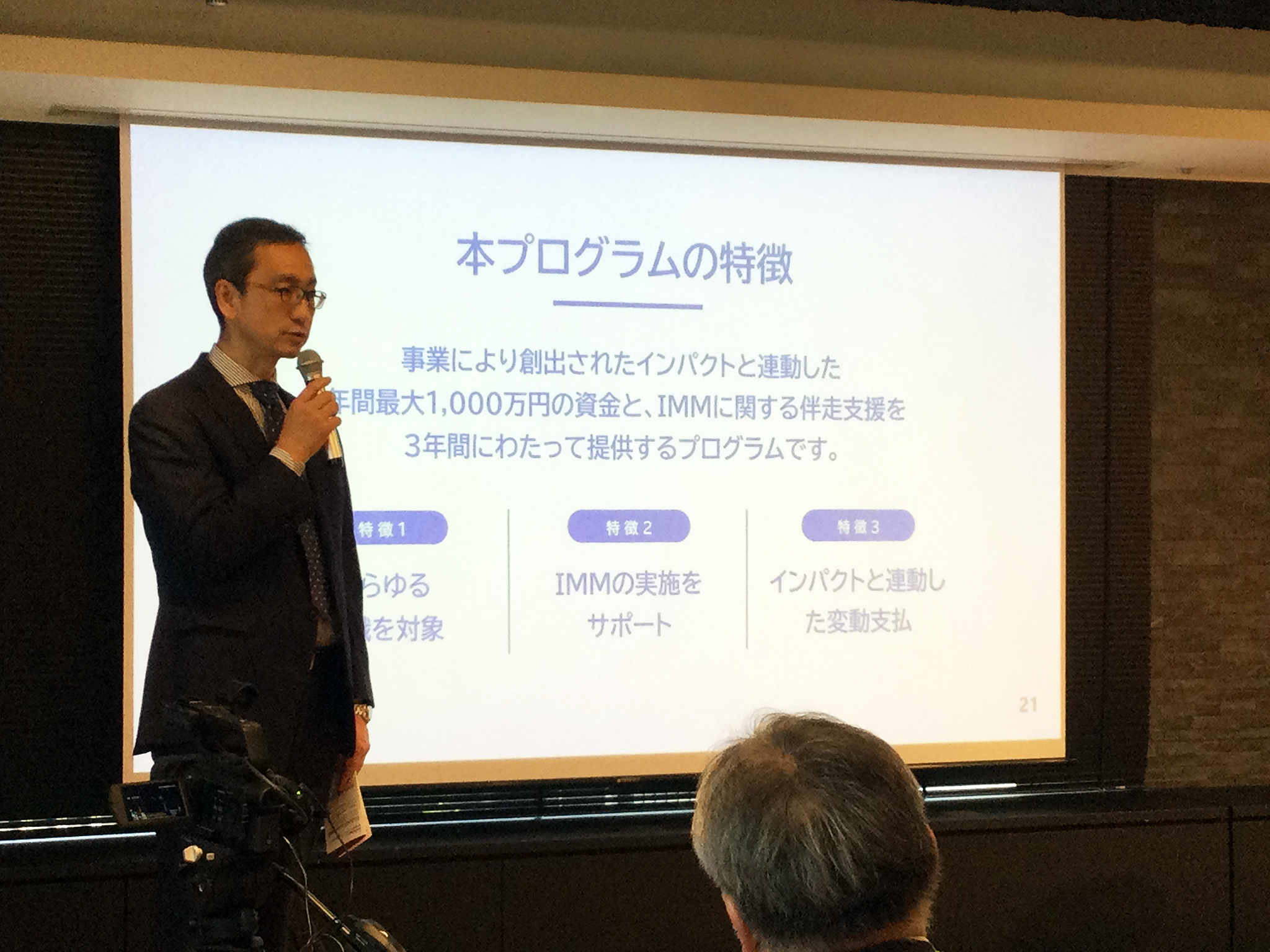 사회적가치연구원의 일본 협력사업 '아웃컴펀드 for IMM' 런칭 포럼에서 사업을 소개하는 일본펀드레이징협회(JFRA) 우오 마사타카 회장. (사진=사회적가치연구원)