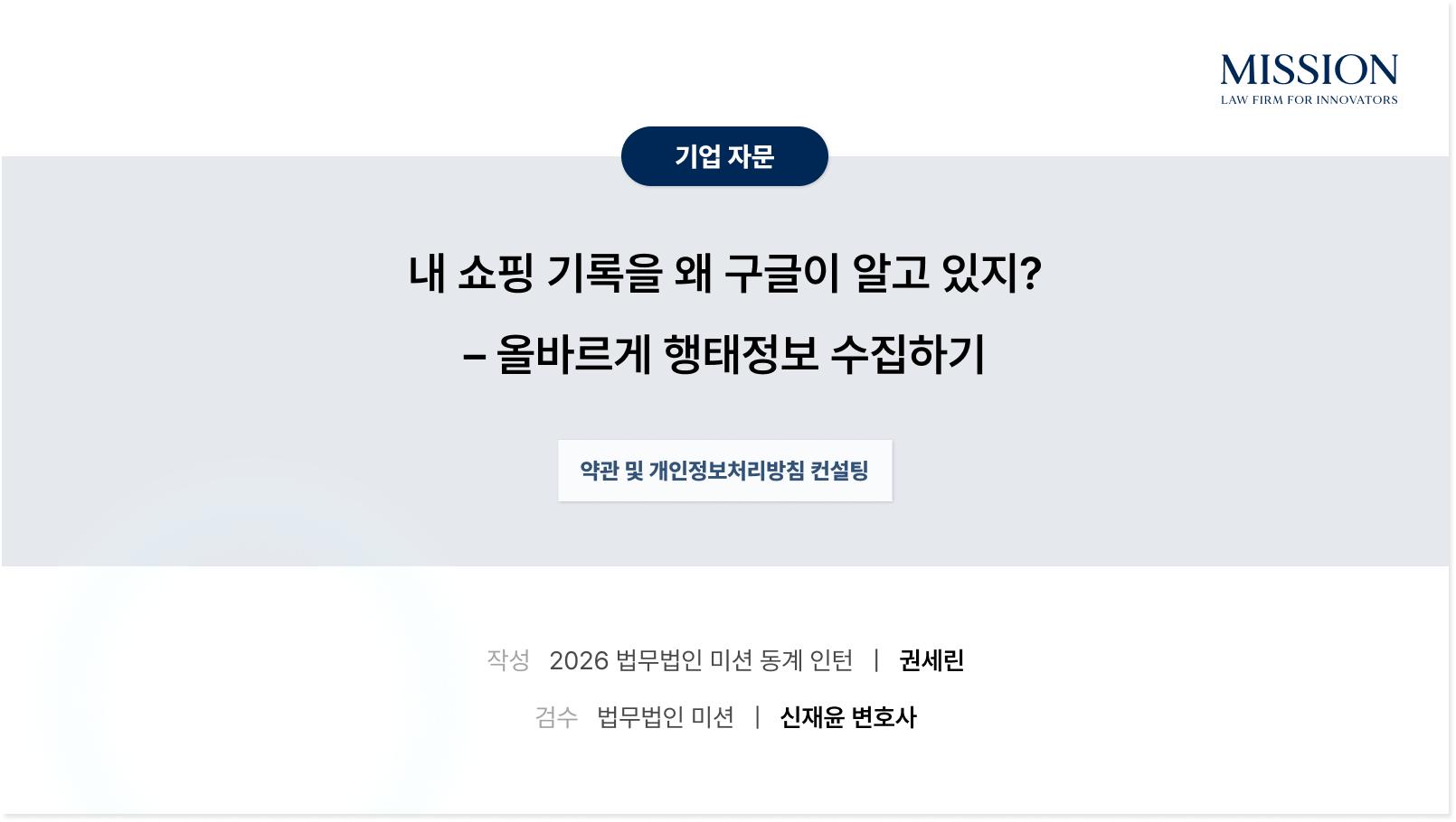 원문 : [법무법인 미션] [인턴 칼럼] 내 쇼핑 기록을 왜 구글이 알고 있지? – 올바르게 행태정보 수집하기