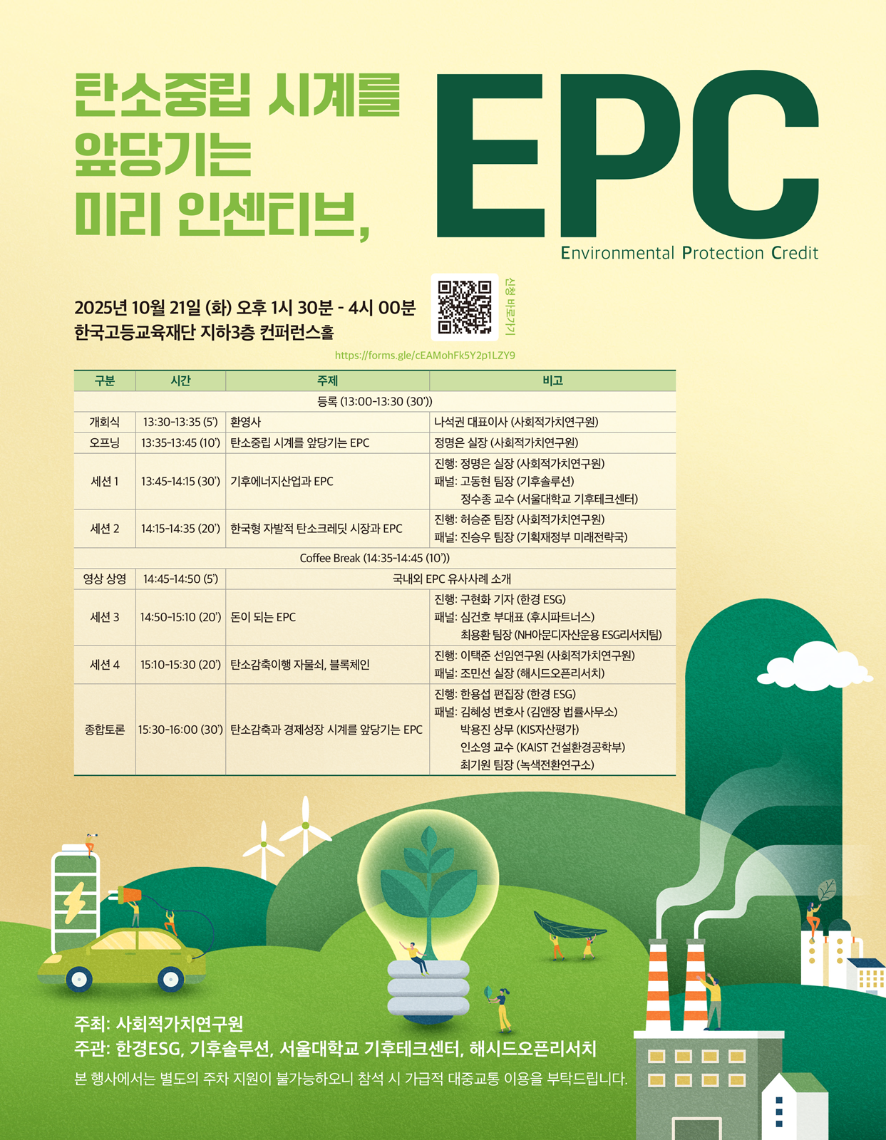 사회적가치연구원(CSES)은 오는 10/21(화) EPC 세미나를 개최합니다. 에너지 · 금융 · 기술 · 학계의 전문가들이 머리를 맞대고, 어떻게 하면 우리 사회가 탄소 중립 시계를 앞당길 수 있을지 구체적 해답을 찾는 과정이 될 이번 세미나에 여러분을 초대합니다.