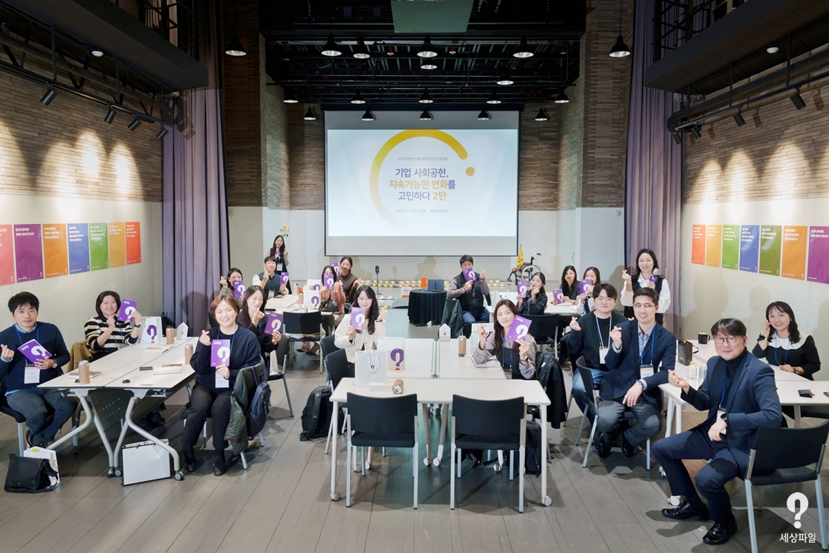 지난 11월 26일 세상파일은 다양한 기업/기관의 사회공헌 담당자분들과 한자리에 모여 한 걸음 더 나아간 사회공헌을 논의하는 자리로 2025 하반기 세상파일 라운드테이블 행사를 열었습니다. 지난 5월 상반기에 이어 ‘기업 사회공헌의 지속가능한 변화’를 주제로 좀 더 깊이 있는 두 번째 논의를 이어가 보았는데요.