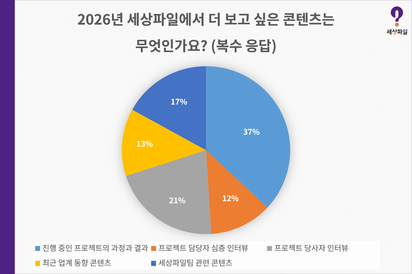 한편, 2026년에 세상파일이 더 다뤄 줬으면 하는 영역에 대한 주관식 문항도 있었는데요. 독자들이 제안한 향후 콘텐츠 아젠다는 매우 구체적이고 전문적이었으며, 동시에 우리 사회가 지금 당장 해결해야 할 시급한 난제들을 정확히 가리키고 있었어요.
